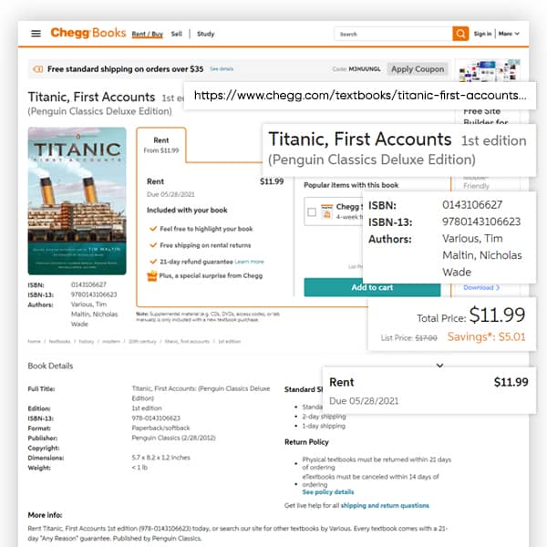 At 3i Data Scraping Services, we can extract the required data fields from the Chegg Website: